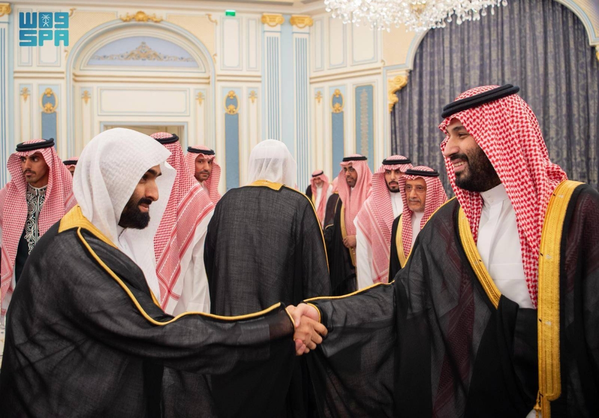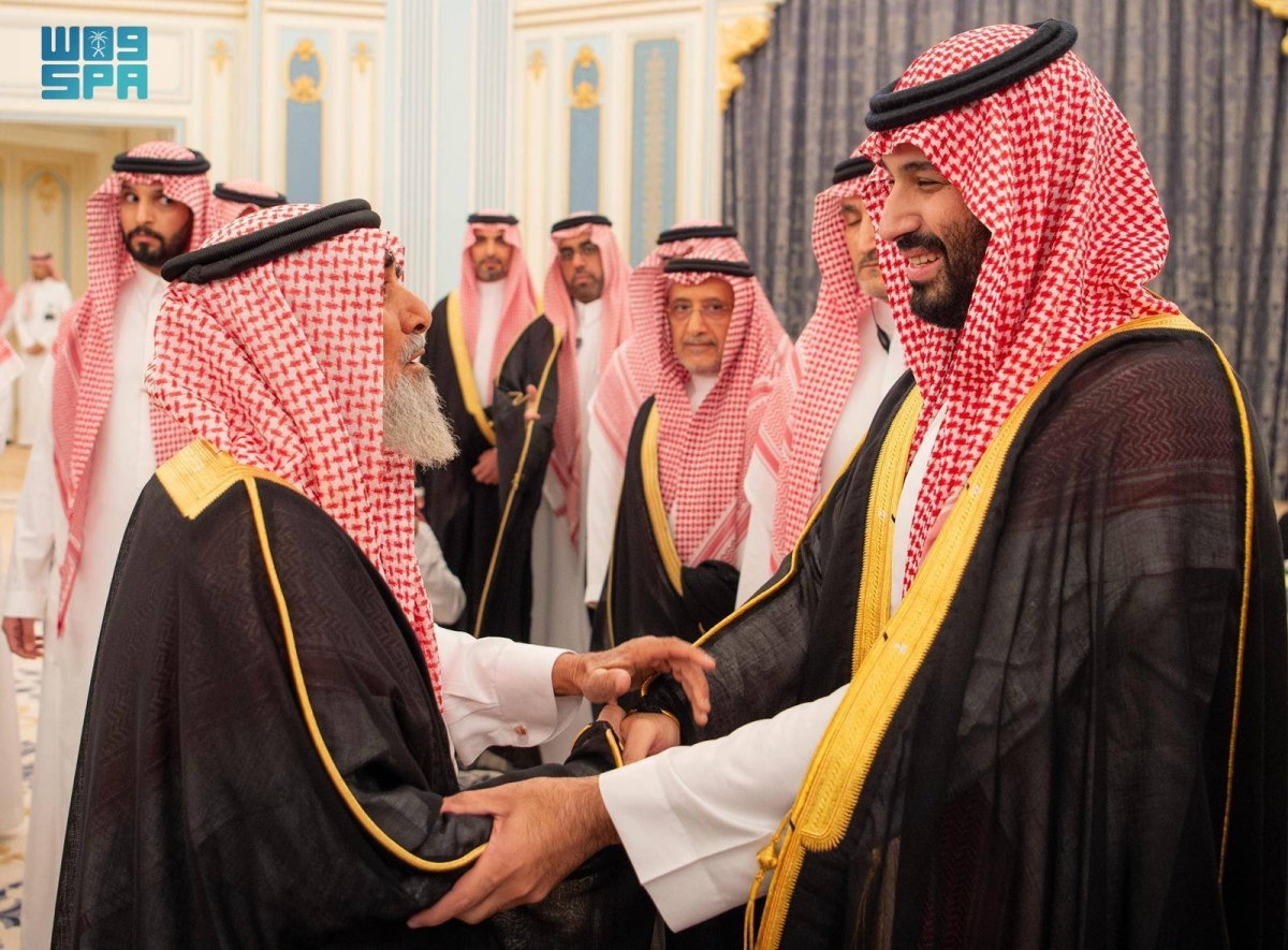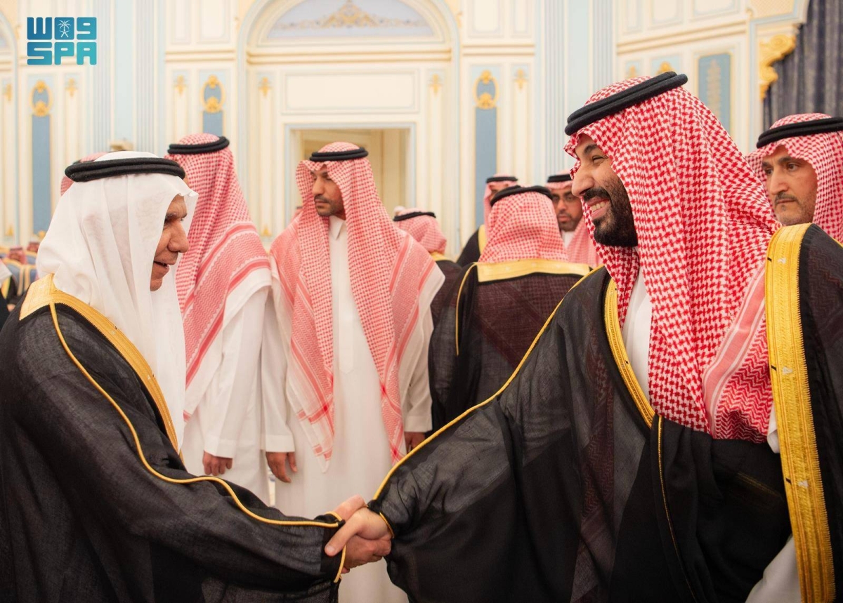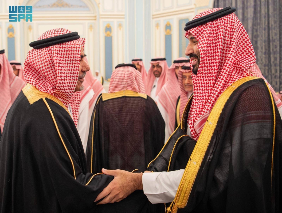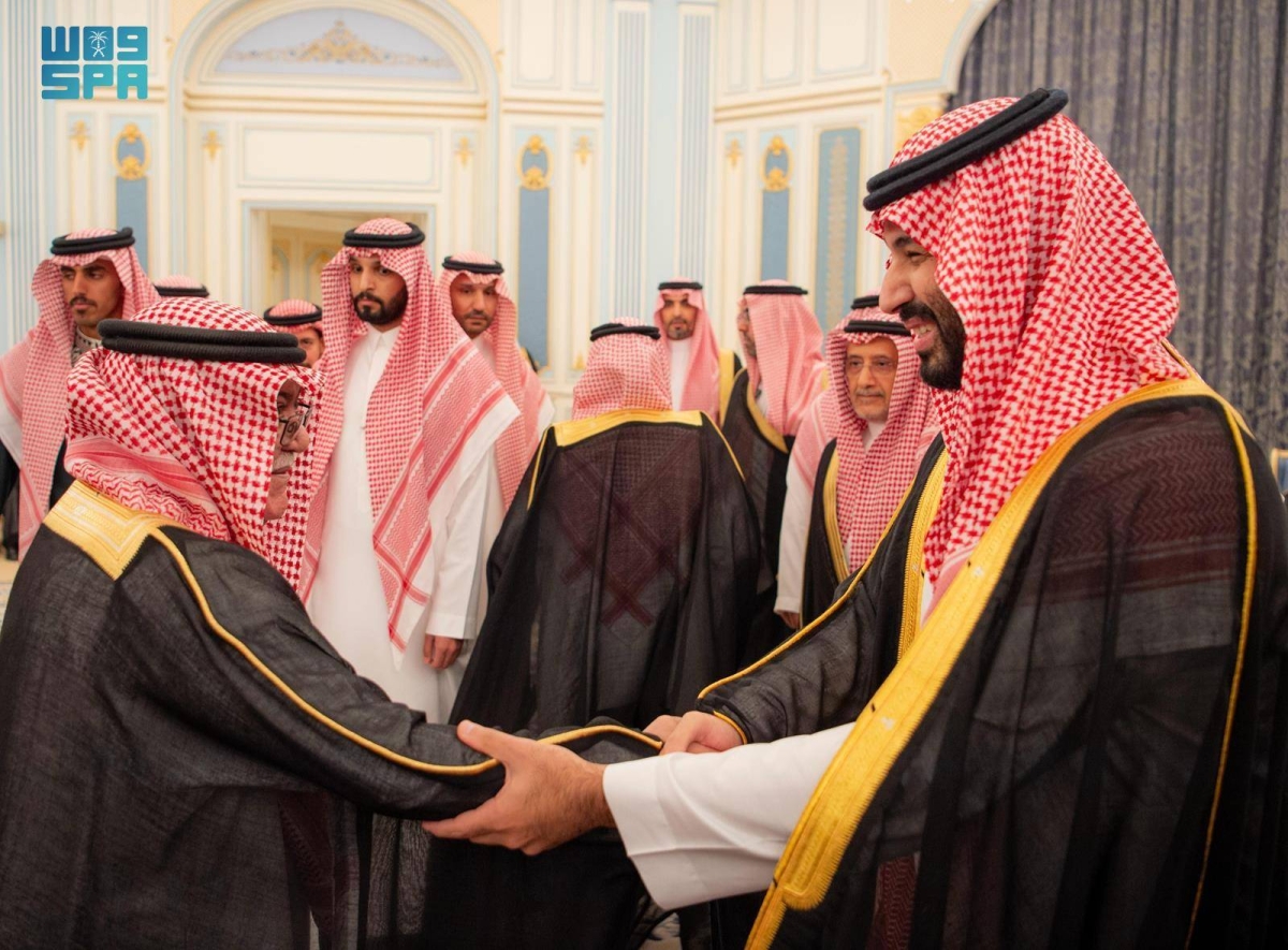 ولي العهد يستقبل الأمراء والعلماء والوزراء وجمعا من المواطنين الذين قدموا للسلام عليه