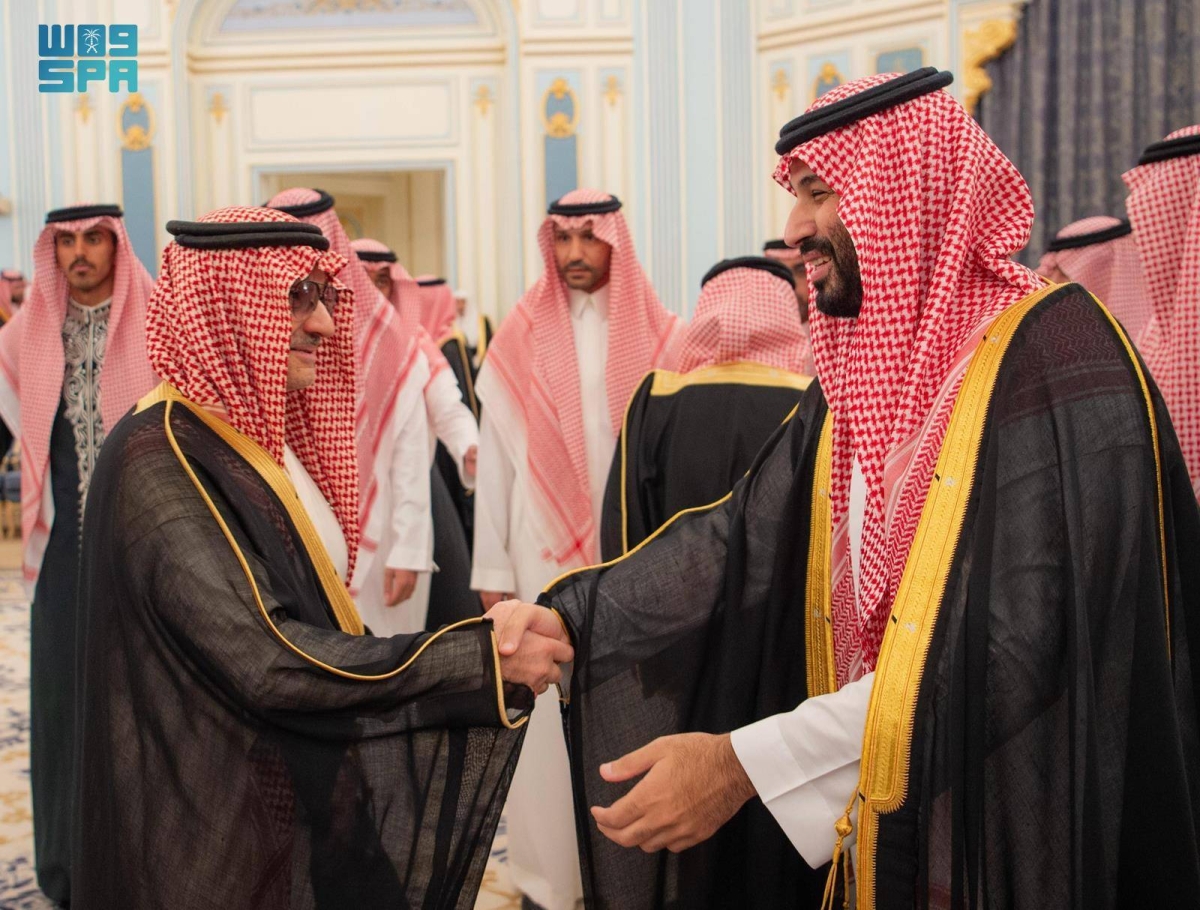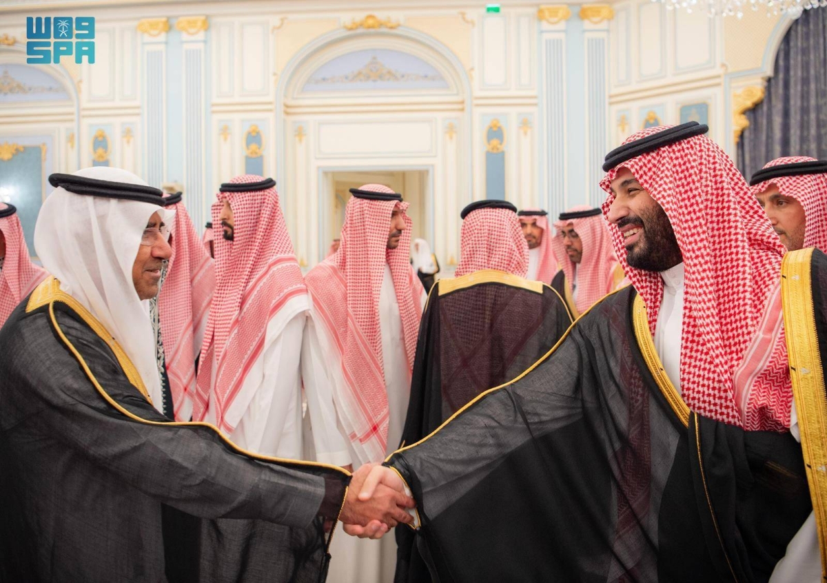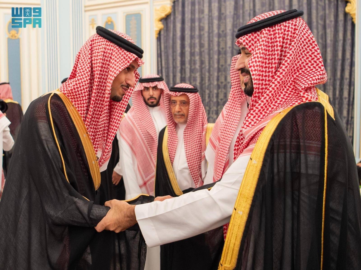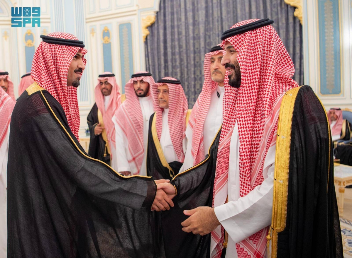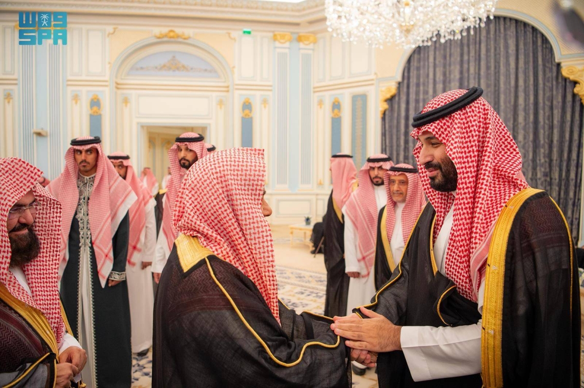 ولي العهد يستقبل الأمراء والعلماء والوزراء وجمعا من المواطنين الذين قدموا للسلام عليه
