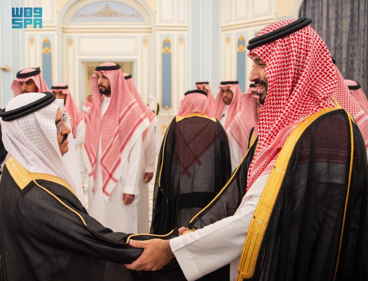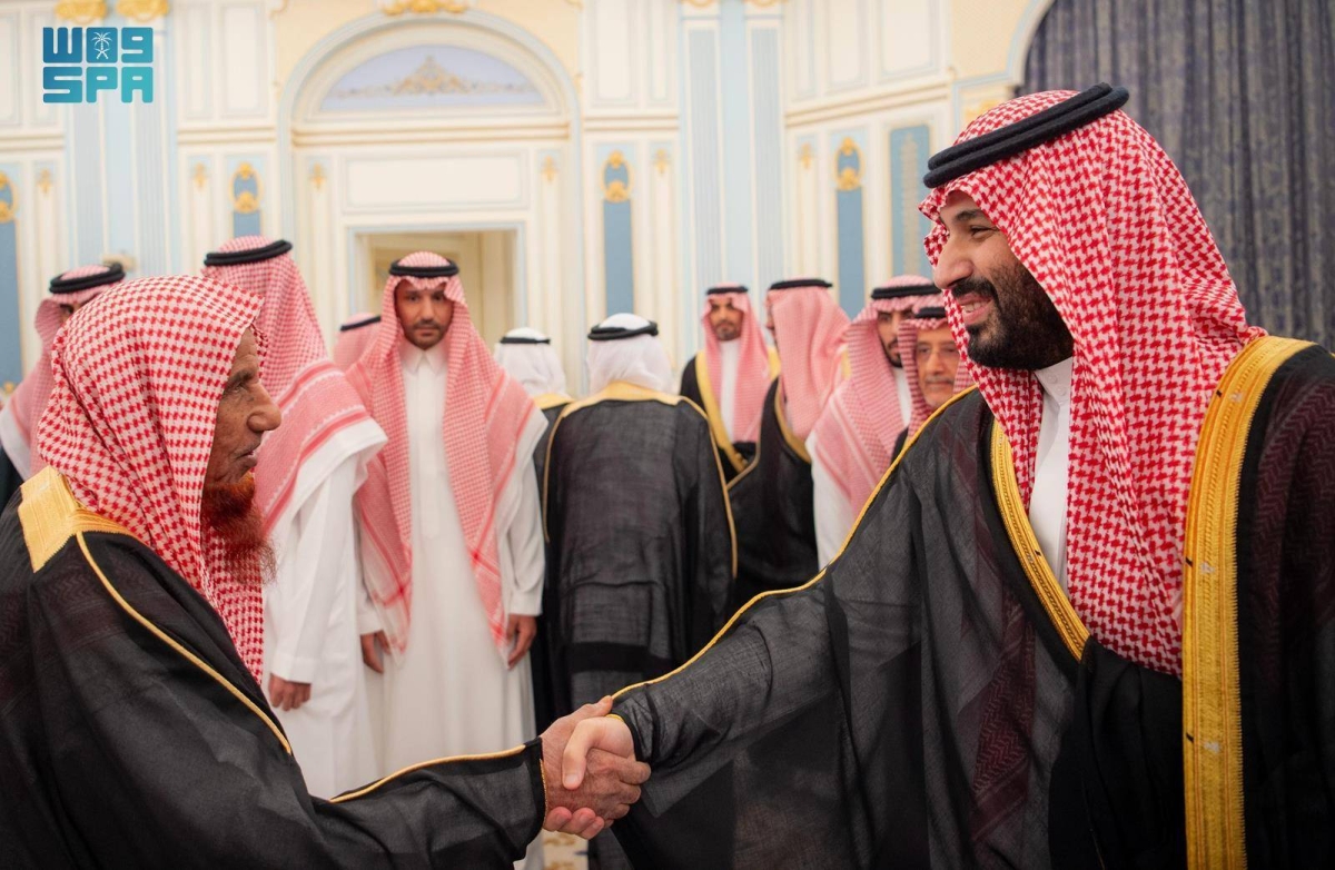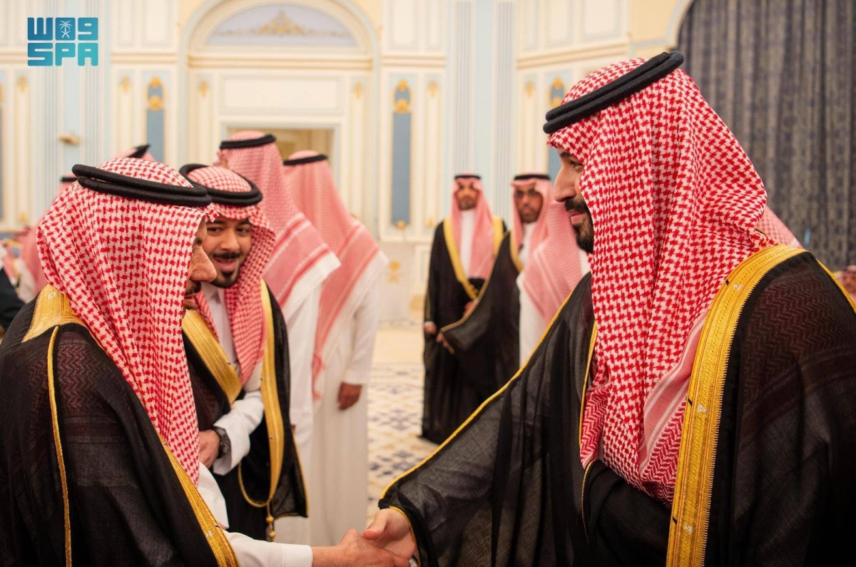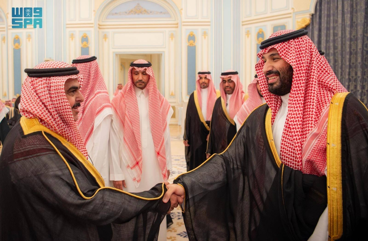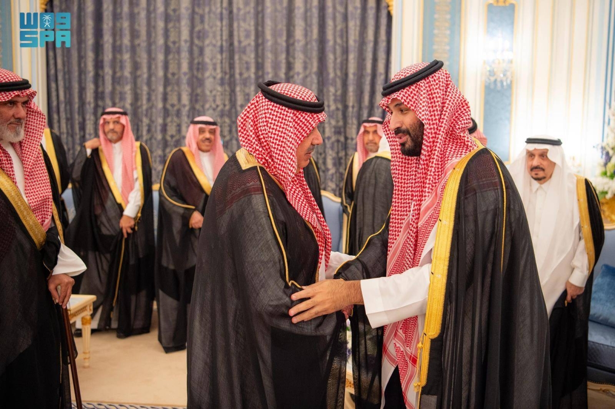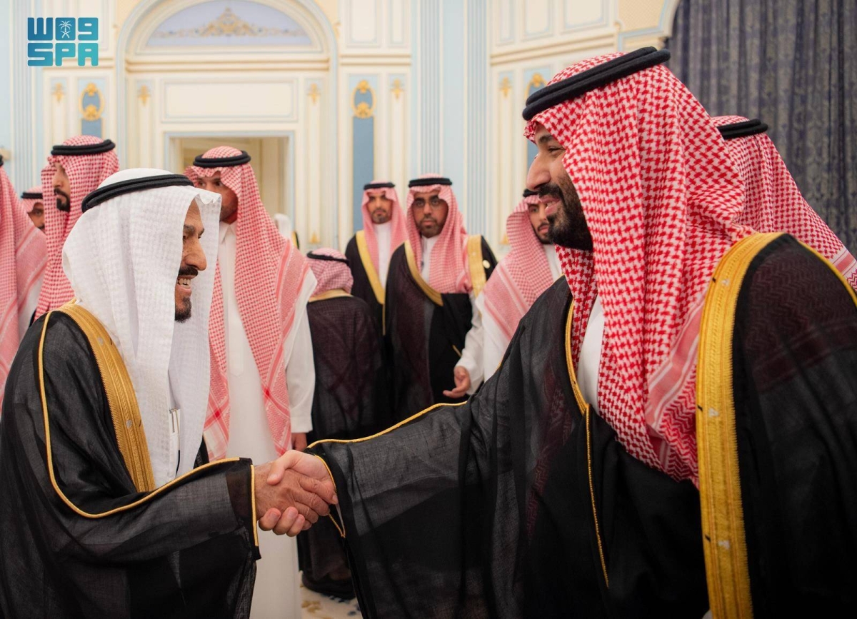 ولي العهد يستقبل الأمراء والعلماء والوزراء وجمعا من المواطنين الذين قدموا للسلام عليه