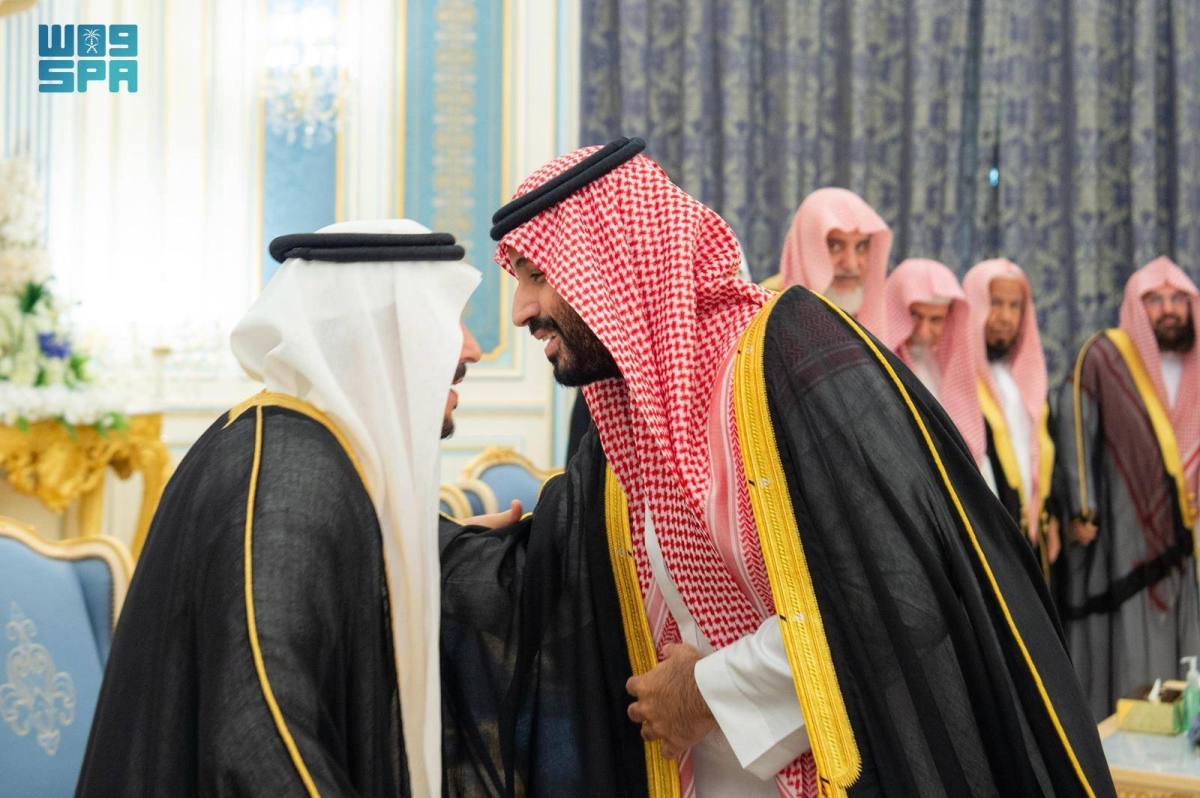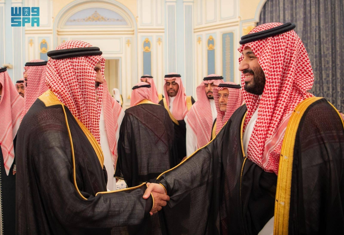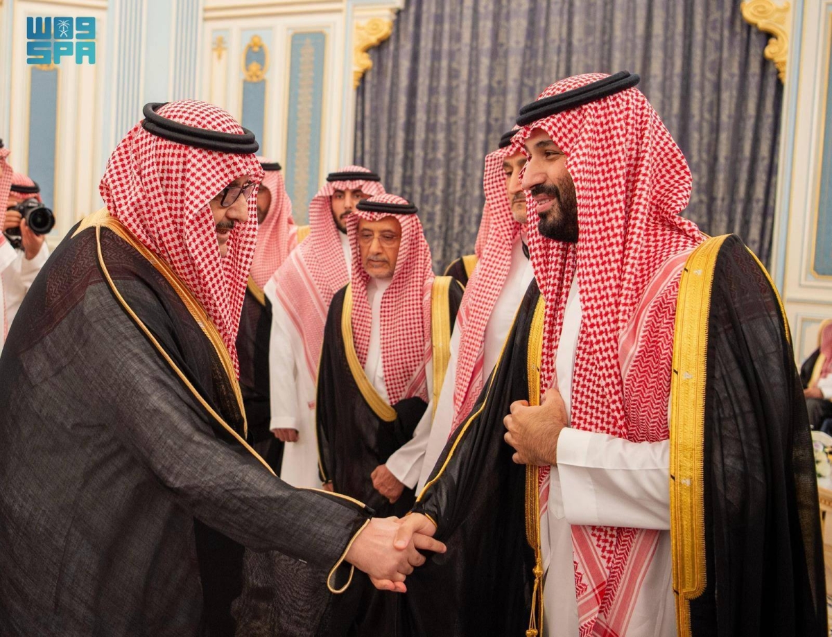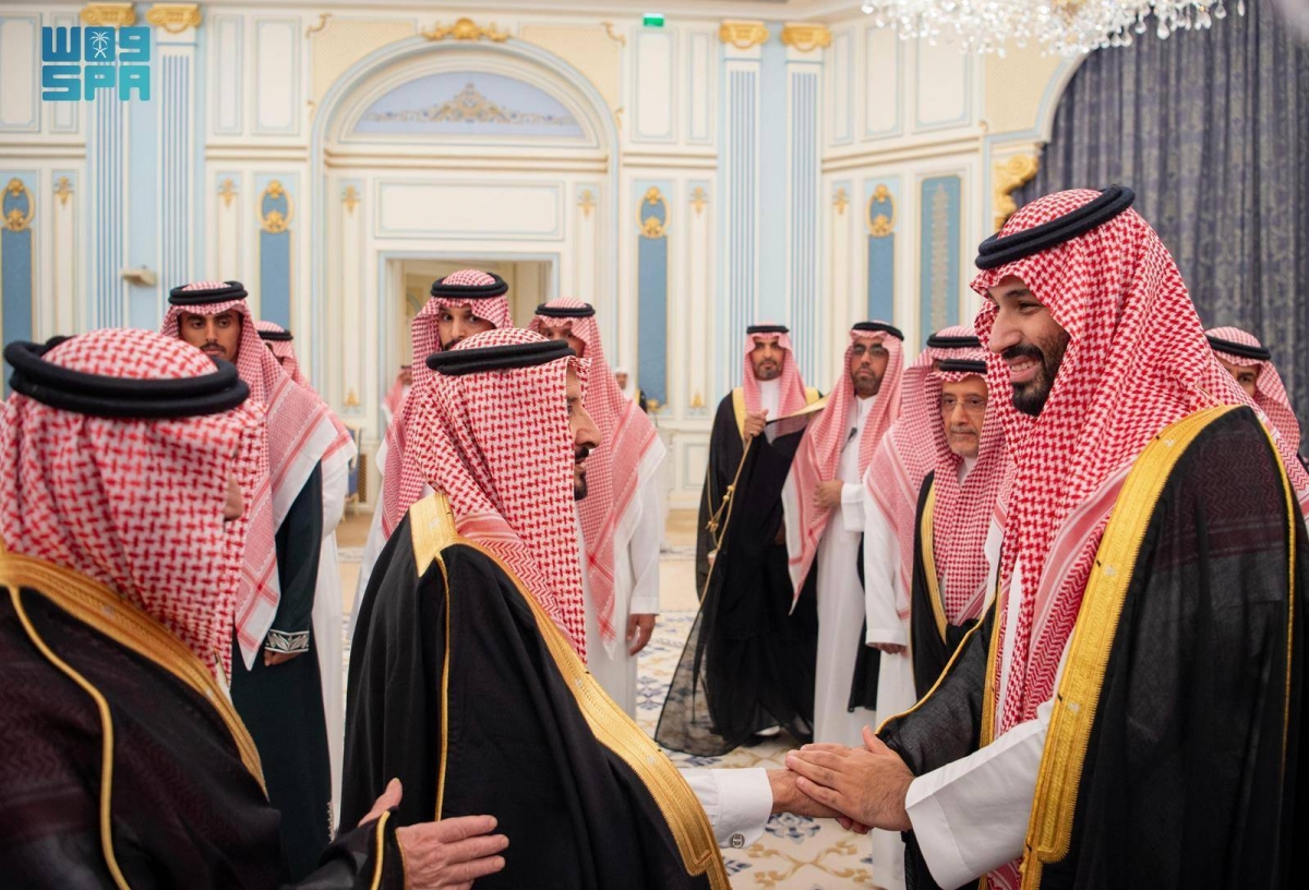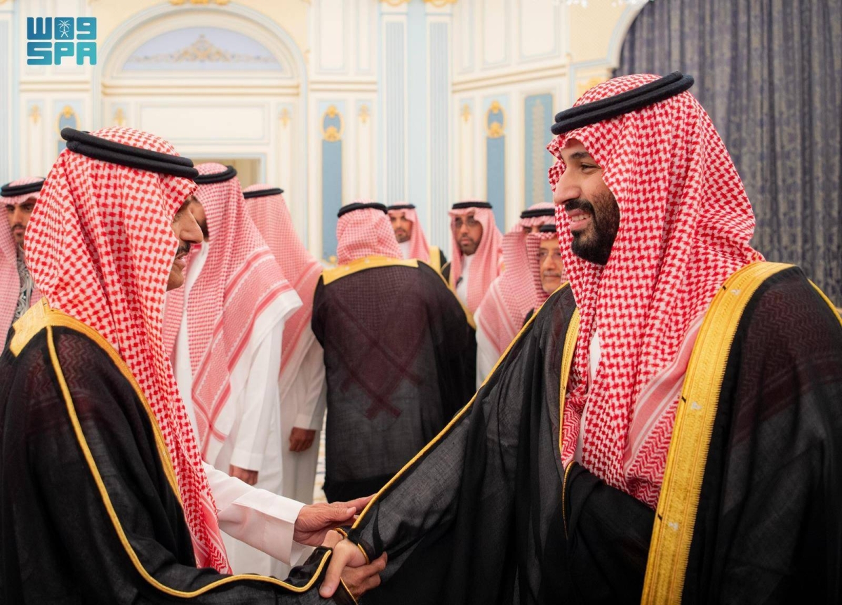 ولي العهد يستقبل الأمراء والعلماء والوزراء وجمعا من المواطنين الذين قدموا للسلام عليه