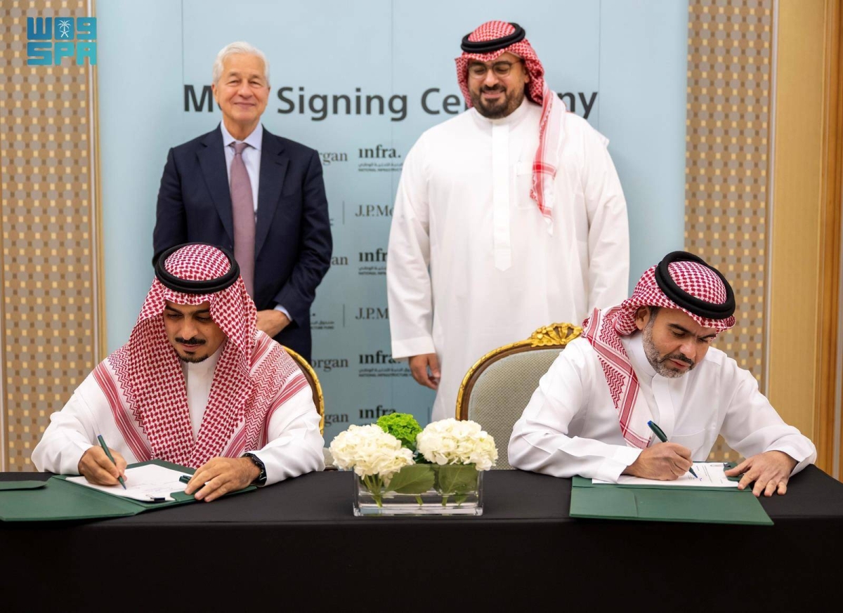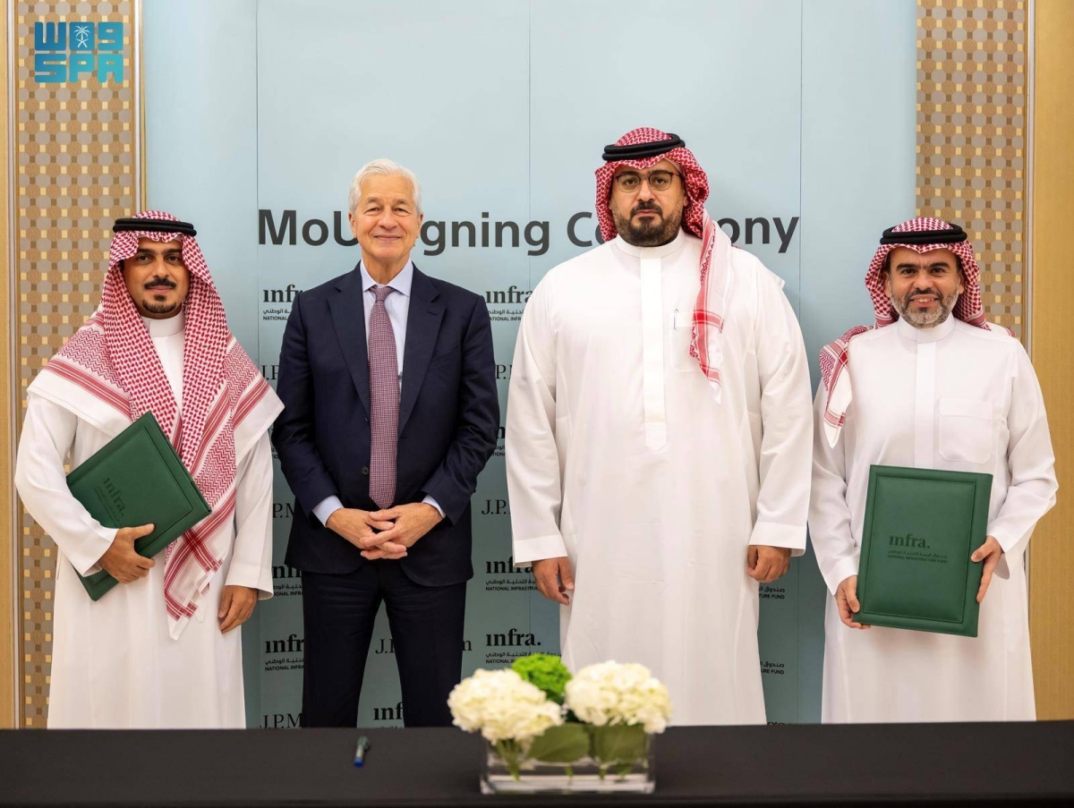 وقع صندوق البنية التحتية الوطني وبنك «جي بي مورغان»، مذكرة تفاهم تهدف إلى التعاون في تطوير حلول التمويل الهيكلي لمشاريع البنية التحتية في المملكة، وذلك بحضور وزير الاقتصاد والتخطيط رئيس مجلس إدارة صندوق البنية التحتية الوطني، الأستاذ فيصل بن فاضل الإبراهيم، والرئيس التنفيذي ورئيس مجلس إدارة بنك «جي بي مورغان» جيمي ديمون.