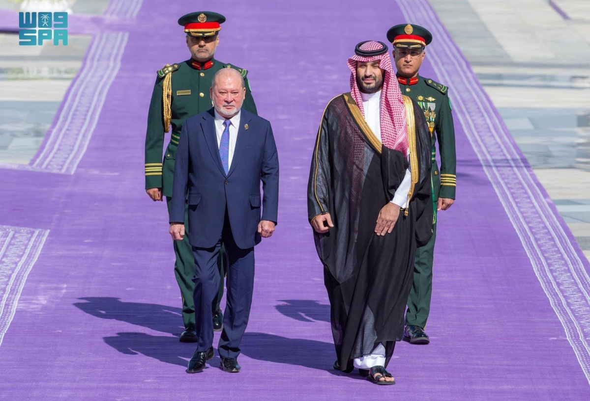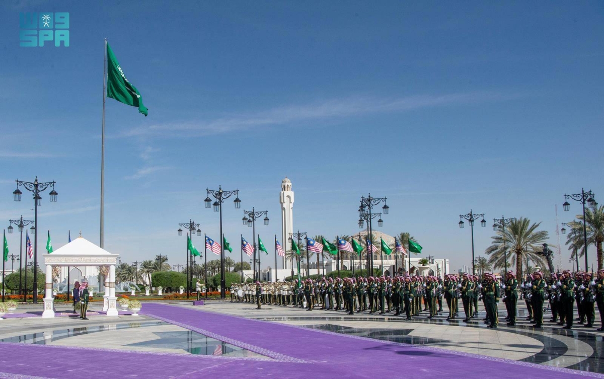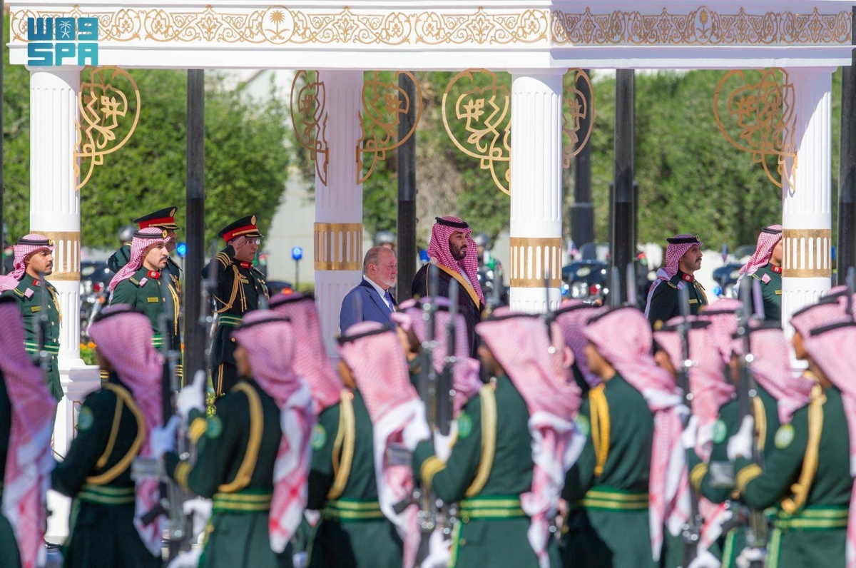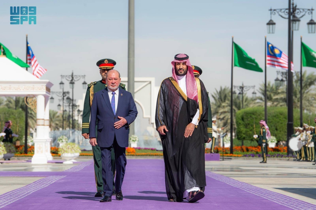 وقد أجريت له مراسم الاستقبال الرسمية، وعزف السلامان الملكيان السعودي والماليزي، واستعرض مع ولي العهد حرس الشرف.