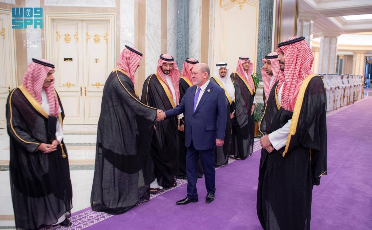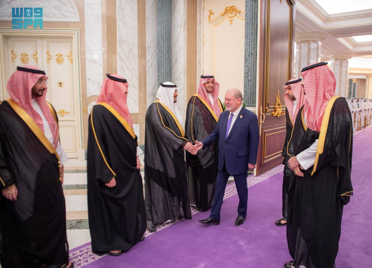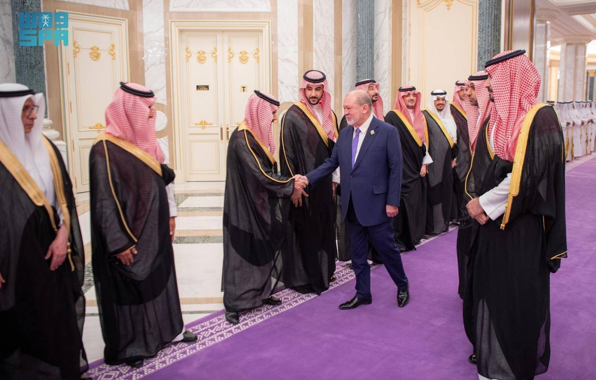 حضر الاستقبال، الأمير تركي بن محمد بن فهد بن عبدالعزيز وزير الدولة عضو مجلس الوزراء، والأمير محمد بن عبدالرحمن بن عبدالعزيز نائب أمير منطقة الرياض، والأمير عبدالعزيز بن سعود بن نايف بن عبدالعزيز وزير الداخلية، والأمير عبدالله بن بندر بن عبدالعزيز وزير الحرس الوطني، والأمير خالد بن سلمان بن عبدالعزيز وزير الدفاع، والأمير فيصل بن فرحان بن عبدالله وزير الخارجية، ووزير السياحة الأستاذ أحمد بن عقيل الخطيب (الوزير المرافق) وسفير خادم الحرمين الشريفين لدى ماليزيا مساعد السليم.
