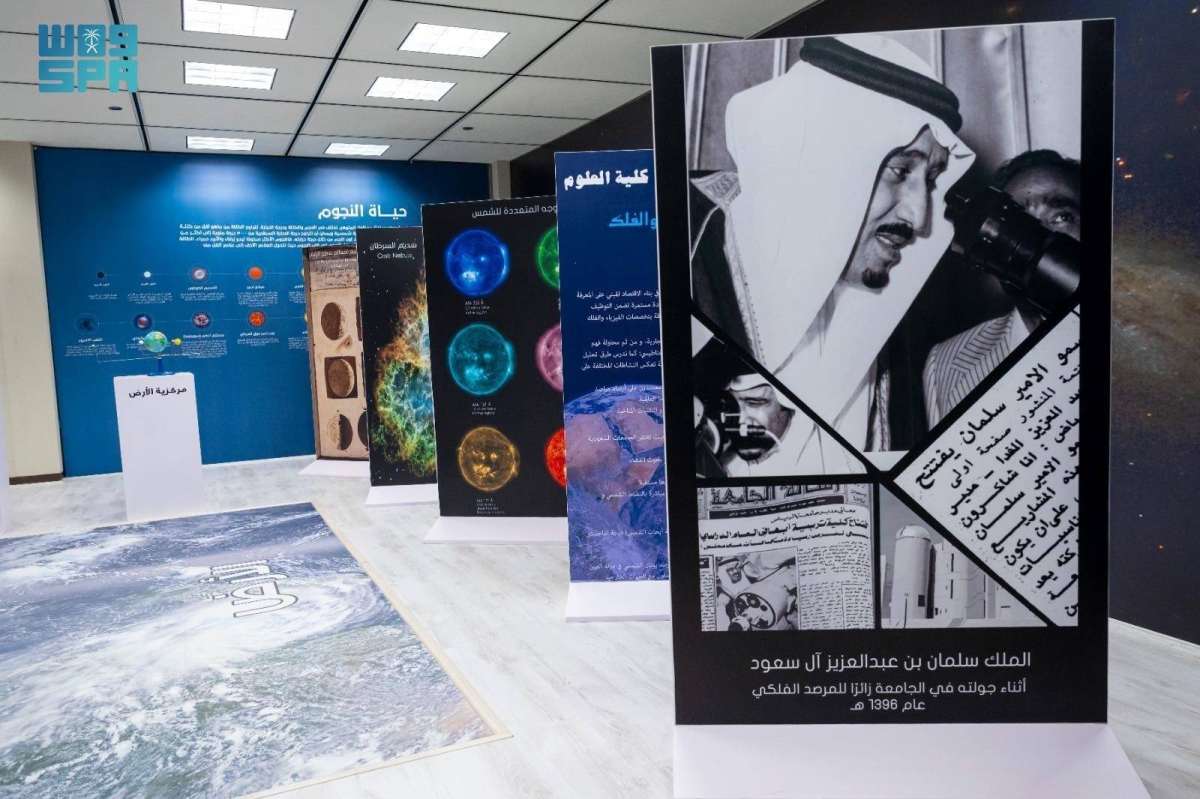 ورصدت «واس» وجود صورة تاريخية لخادم الحرمين الشريفين الملك سلمان بن عبدالعزيز آل سعود - حفظه الله - في افتتاح المرصد الفلكي الذي يعد أول مرصد في المملكة، افتتح في مقر الجامعة عام 1396هـ، وأكد عميد الكلية أن الصورة تأتي بمثابة رمز وطني ذي دلالة قوية تروي علاقته - أيده الله - التاريخية بجامعة الملك سعود منذ إنشائها حتى اليوم، مما يعكس الدعم الكبير الذي توليه القيادة الرشيدة للعلم والبحث العلمي وعلوم الفضاء.