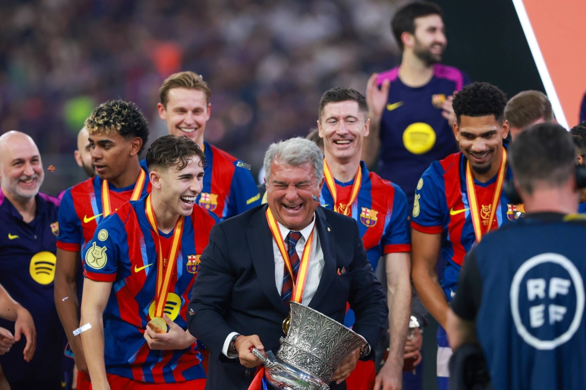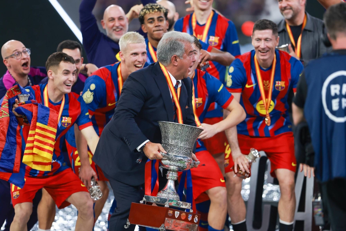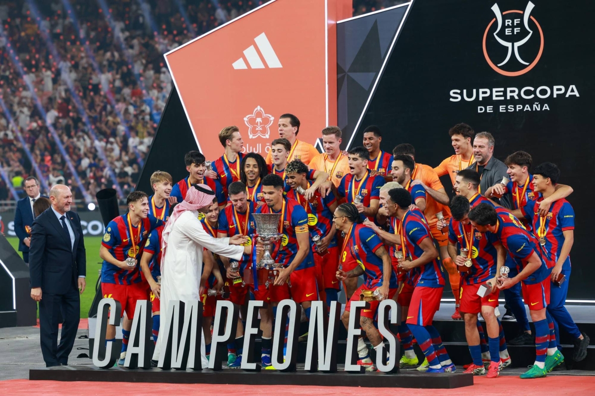 توَّج الأمير عبدالعزيز بن تركي الفيصل؛ وزير الرياضة، رئيس اللجنة الأولمبية والبارالمبية السعودية، فريق برشلونة بكأس السوبر الإسباني لعام 2026، عقب فوزه على ريال مدريد بنتيجة (3-2)، في المباراة النهائية التي أُقيمت على ملعب الإنماء بمدينة الملك عبدالله الرياضية في جدة، وذلك بحضور رافائيل لوزان أبال رئيس الاتحاد الإسباني لكرة القدم، وعدد من قيادات الوزارة والاتحاد الإسباني، ومسؤولين رياضيين في القطاع الرياضي، وسط حضور جماهيري كبير جداً بلغ 60326 متفرجًا.