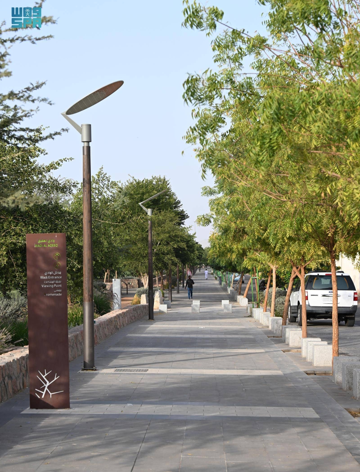 وينسجم تصميم المسار مع الطبيعة المحيطة، حيث جهز بممرات مهيأة، وجلسات مطلة على الوادي، وأشجار ظل ممتدة على طول المسار، إلى جانب منظومة إنارة حديثة تسهم في تعزيز السلامة وإبراز جمالية الموقع خلال الفترات المسائية، كما يطل على عدد من المواقع التاريخية الموثقة في محيط الوادي، من بينها آثار قصري سعد بن أبي وقاص، وعروة بن الزبير - رضي الله عنهما - إضافة إلى شواهد ونقوش تاريخية تعكس عمق الإرث الحضاري الذي تزخر به المنطقة.