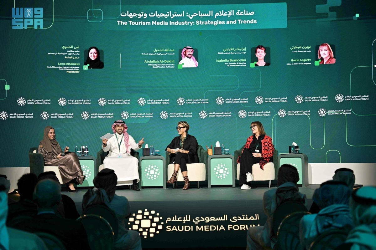 ناقشت جلسة حوارية ضمن فعاليات المنتدى السعودي للإعلام في نسخته الخامسة، توجهات صناعة الإعلام السياحي ودوره في تعزيز الهوية الوطنية ورفع تنافسية الوجهات السياحية في المملكة.