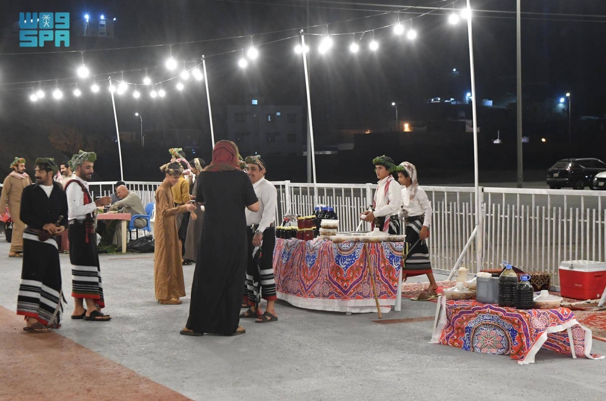 ويضم السوق عددا من الأركان المتنوعة التي تقدم منتجات الأسر المنتجة والمأكولات الشعبية والمشغولات اليدوية، حيث جسّدت أركانه ملامح من التراث العسيري الأصيل، من خلال عرض الأدوات التقليدية والمقتنيات التراثية مثل الأواني الفخارية والسلال المصنوعة من سعف النخيل والمشغولات اليدوية المزينة بالنقوش والألوان التراثية، إلى جانب لوحات فنية تعكس فن القط العسيري الذي يعد أحد أبرز رموز الهوية الثقافية في المنطقة.