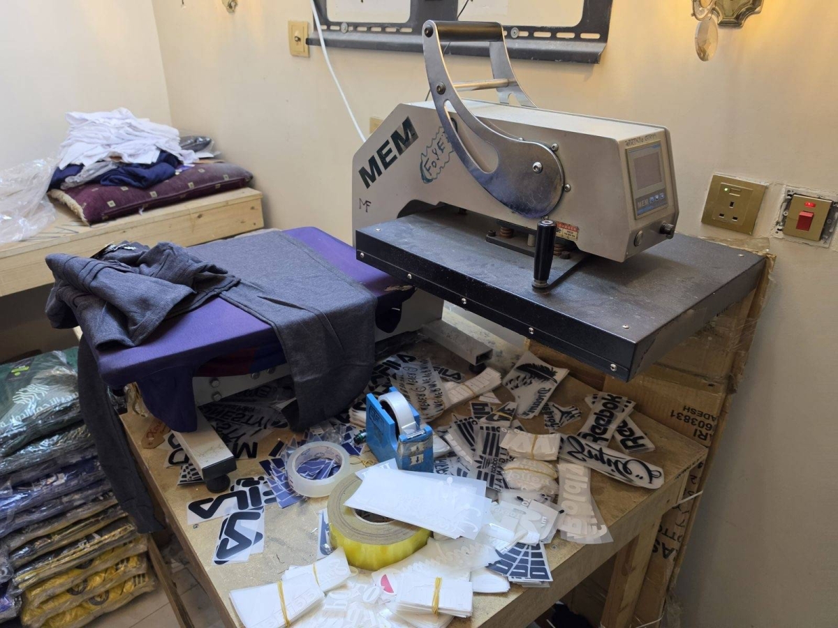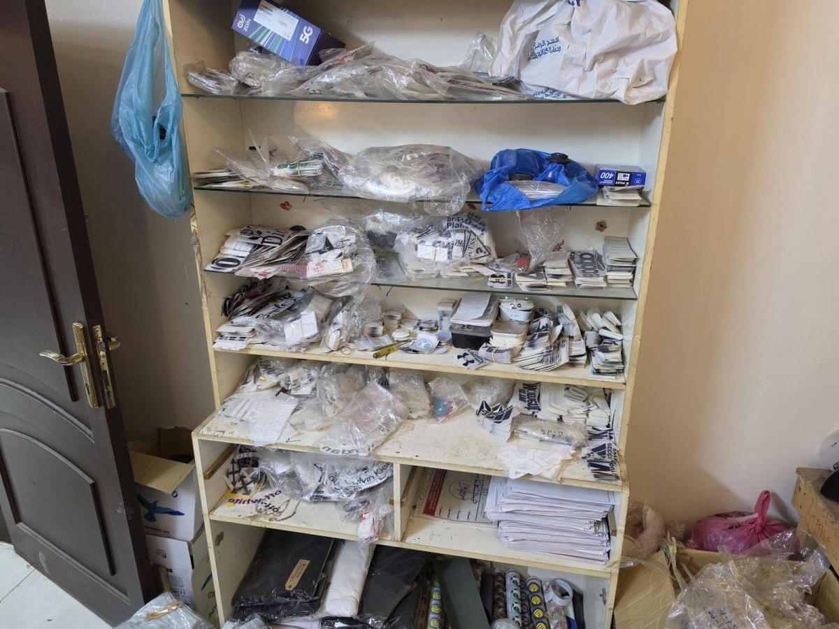 وأشار إلى أن الموقعين الثاني والثالث خُصصا لتصنيع وتقليد ماركات ملابسعالمية وأطقم الأندية حيث جرى ضبط (5) طابعات "استكرات" حرارية و(15) ماكينة خياطة و(5) مكائن طباعة ورقية، وأكثر من (200,000) ملصق لعلامات تجارية عالمية، إلى جانب من "التيشيرتات" الخام والمطبوعة الجاهزة للتوزيع.