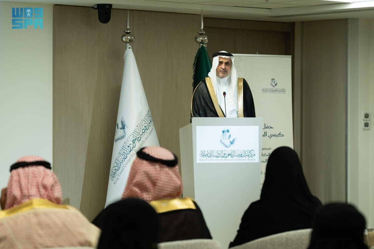 من جانبه أوضح مساعد الأمين العام للشؤون العلمية بالمركز الدكتور عبدالله حميد الدين، أن إطلاق الكرسي يأتي ضمن توجه مركز الملك فيصل لتطوير الحقول المعرفية المرتبطة بالثقافة العربية الإسلامية. وأشار إلى أن المركز يمتلك رصيدا كبيرا من المخطوطات والكتب النادرة، يتجاوز 28 ألف مخطوط أصلي ونحو 100 ألف مخطوط مصور، إضافة إلى مجموعات واسعة من الكتب والمواد العلمية، ما يوفر قاعدة قوية لإطلاق مشاريع بحثية متخصصة.. وأفاد بأن عددا من الكراسي البحثية يعمل حاليا تحت مظلة المركز، من بينها كرسي (اليونسكو لترجمة الثقافات)، و(كرسي أبحاث دروب الحج)، و(كرسي الألكسو للصنائع العربية الإسلامية)، و(كرسي الأمير محمد الفيصل للتقنية والابتكار)، وجميعها تستهدف تطوير مجالات معرفية تخدم دراسة الحضارة العربية الإسلامية.