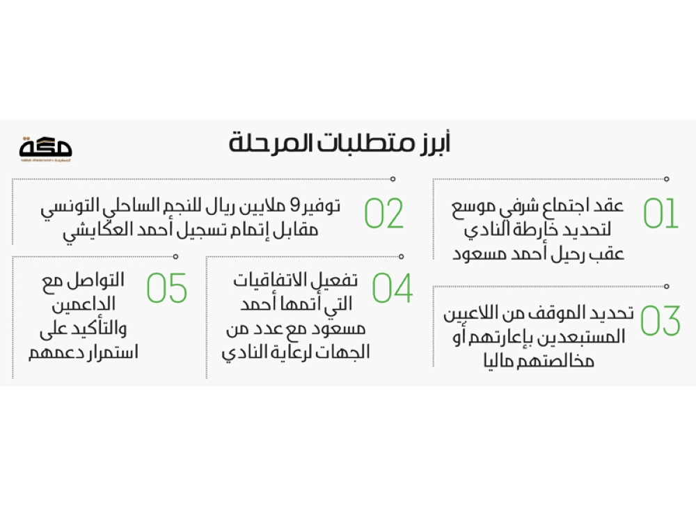 4 تفعيل الاتفاقيات التي أتمها أحمد مسعود مع عدد من الجهات لرعاية النادي