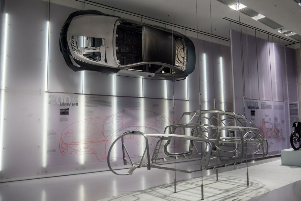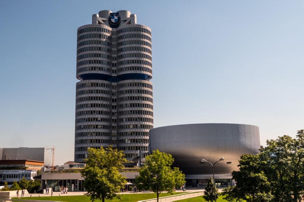 يقع متحف بي إم دبليو بجوار المبنى الرئيس لمقر شركة بي إم دبليو الرائع، والذي صمم على شكل الأسطوانات الأربع الموجودة في جميع محركات السيارات.