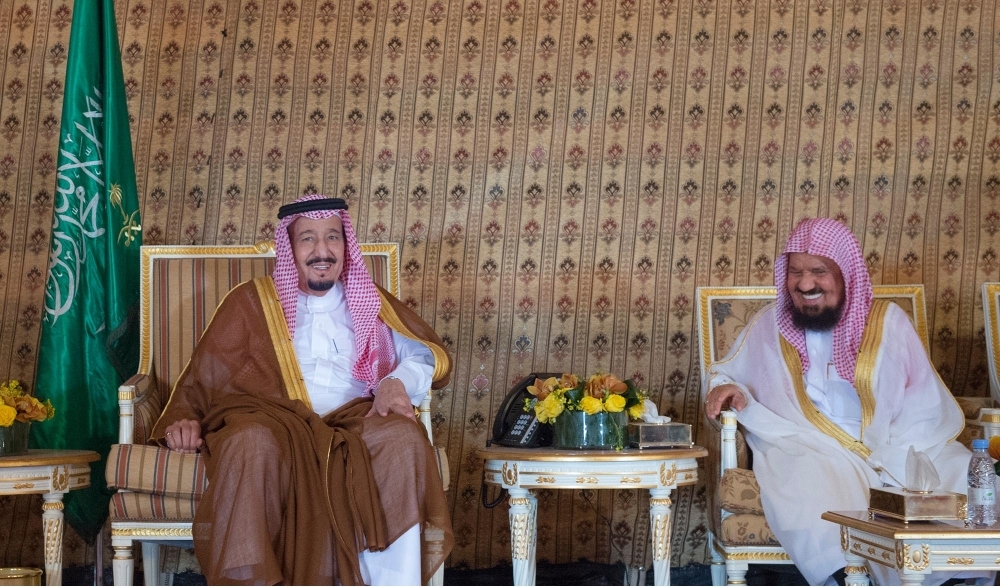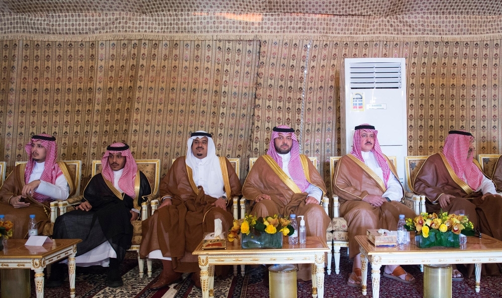 ووصل في معية خادم الحرمين، عضو هيئة كبار العلماء المستشار بالديوان الملكي عبدالله المنيع وعضو هيئة كبار العلماء المستشار بالديوان الملكي الدكتور عبدالله المطلق ووزير الدولة عضو مجلس الوزراء الدكتور مساعد العيبان ورئيس المراسم الملكية خالد لعباد ونائب السكرتير الخاص لخادم الحرمين الشريفين مساعد رئيس الديوان الملكي للشؤون التنفيذية فهد العسكر والمستشار في الديوان الملكي المشرف العام على مكتب وزير الدفاع فهد العيسى ورئيس الحرس الملكي الفريق أول حمد العوهلي ونائب رئيس الديوان الملكي عقلا العقلا ومساعد السكرتير الخاص لخادم الحرمين الشريفين تميم السالم ورئيس الشؤون الخاصة لخادم الحرمين الشريفين المكلف خالد السويلم.